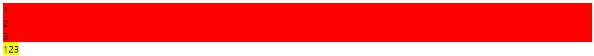 빨간색 부분은 div 태그로 작성된 문단이고, 노란색 부분은 span태그로 작성된 부분이다. 확연한 차이가 있는 것을 볼 수 있습니다.