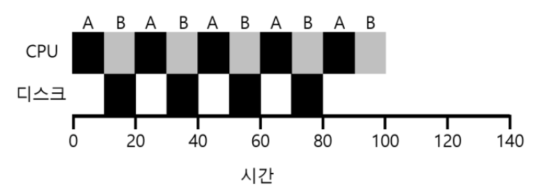 따라서 이렇게 연산의 중첩을 통해 입출력 요청이 있는 프로세스들을 스케줄링하는 경우 CPU를 더 잘 활용할 수 있게 된다.