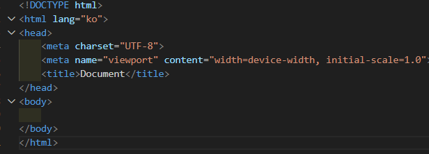 위 사진은 html파일에서 기본적으로 사용되는 스켈레톤 코드이다. 이에 대해 설명을 조금 하자면